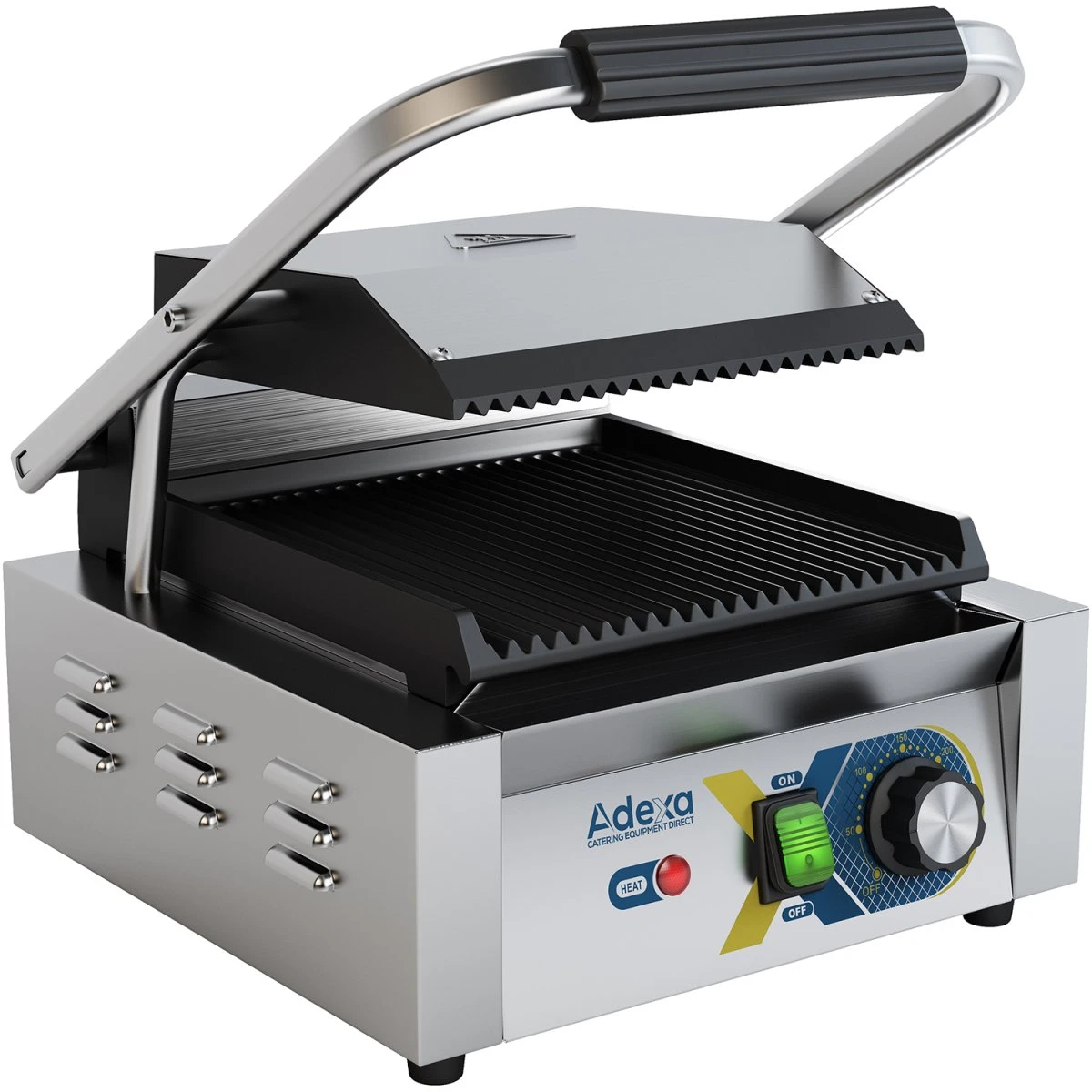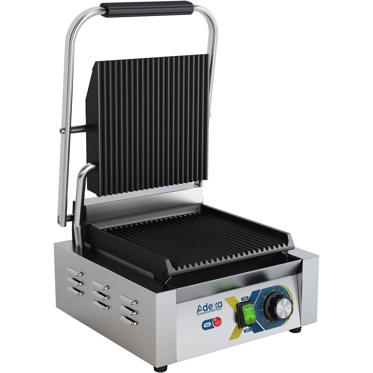 Grill your most popular sandwiches to perfection with this multi contact panini sandwich grill! The thermostatic controls let you adjust temperatures so you can cook at the perfect temperature, while the stainless steel exterior frame ensures long-lasting durability. Great for grilling paninis, sandwiches, bread, and even hamburgers and quesadillas, this versatile grill will add variety to your establishment!