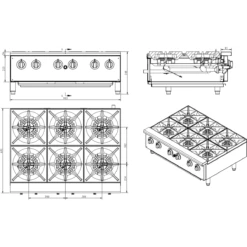 Professional Gas Hotplate Cooker 6 Burners 42kW Countertop | Adexa EHP6S