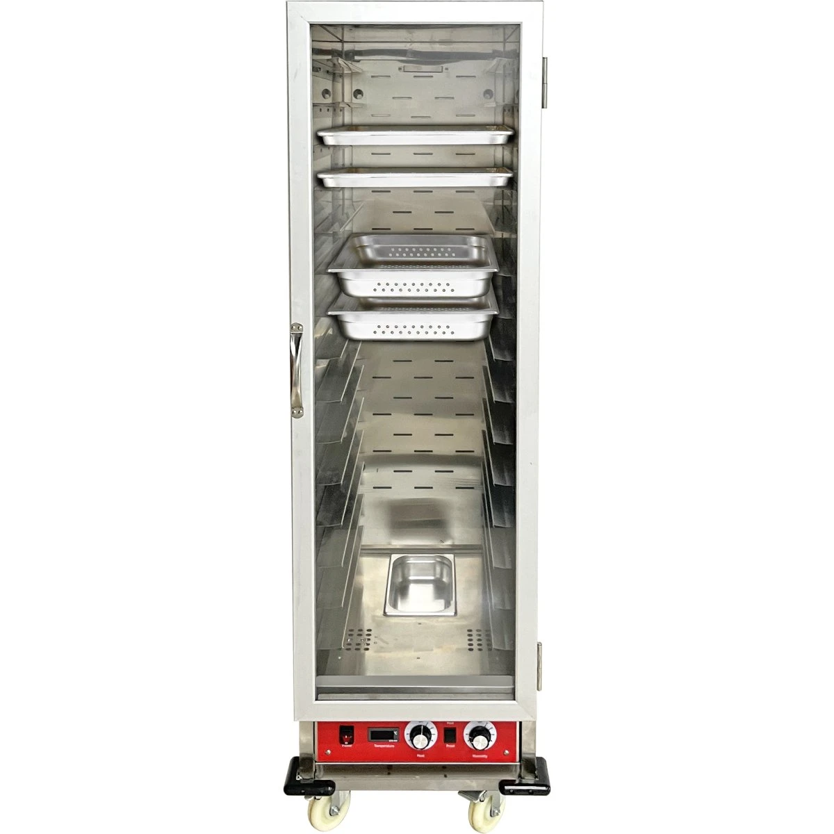 Commercial holding and proofing cabinet, very often used as a chicken warmer or a banqueting trolley that fulfils the highest demands of design, functionality and ergonomics. Thanks to its temperature adjustment down to the degree and excellent insulating properties, it provides the best possible catering food quality – even in case of longer waiting times. A high capacity holding cupboard to keep your gastronorm pans at a safe, ready to serve temperature at a great bargain discount.