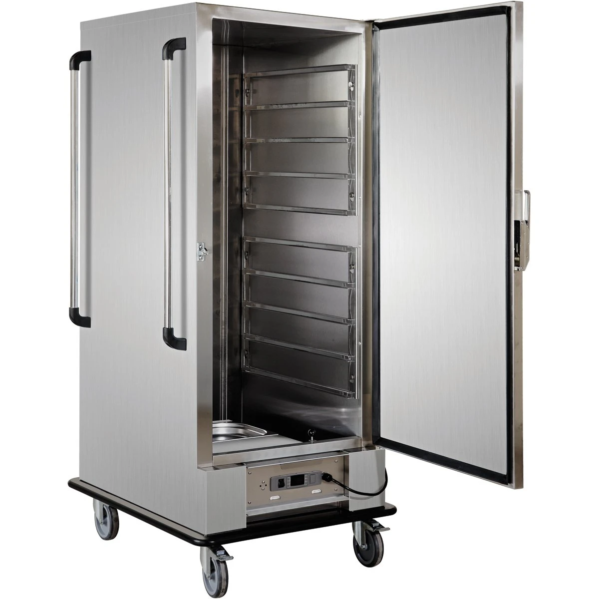 Commercial banquet trolley that fulfils the highest demands of design, functionality and ergonomics. Thanks to its temperature adjustment down to the degree and excellent insulating properties, it provides the best possible food quality – even in case of longer waiting times. A high capacity heated mobile cupboard to keep your gastronorm pans at a safe, ready to serve temperature.